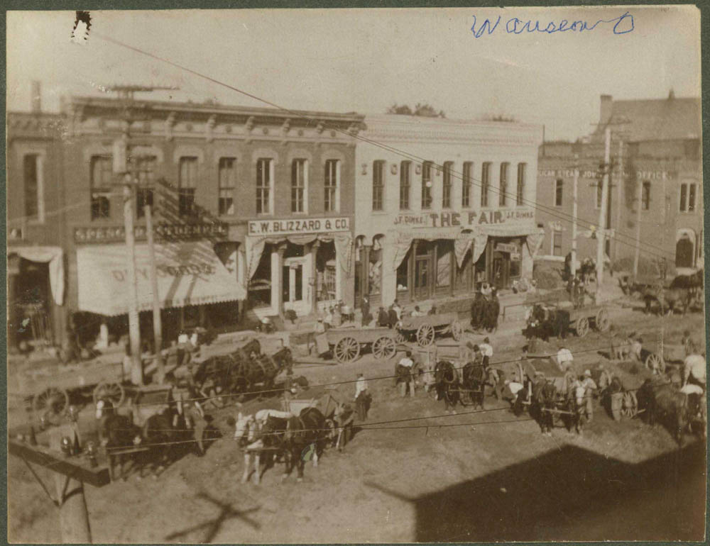 West side of North Fulton Street at the corner of Elm Street, Wauseon, Ohio, circa 1890. Wauseon is near Toledo, on the other end of Lake Erie from Buffalo. Connection or coincidence? |